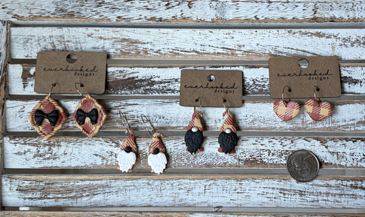 plaid collection earrings | framed bow + gnome + heart stylesRegular price From $14.00 USDRegular priceUnit price / per-